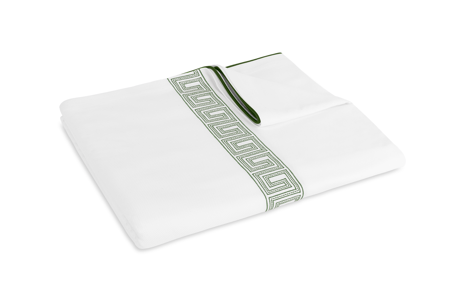 Inspired by an intricately beaded Schumacher tape, our boldly embroidered Ophelia collection embodies a traditional Greek key pattern with a bespoke sensibility. Now available on our signature Camilla Pique with a coordinating corded edge in Nocturne sateen, it’s a playful, exuberant take on a traditional motif.