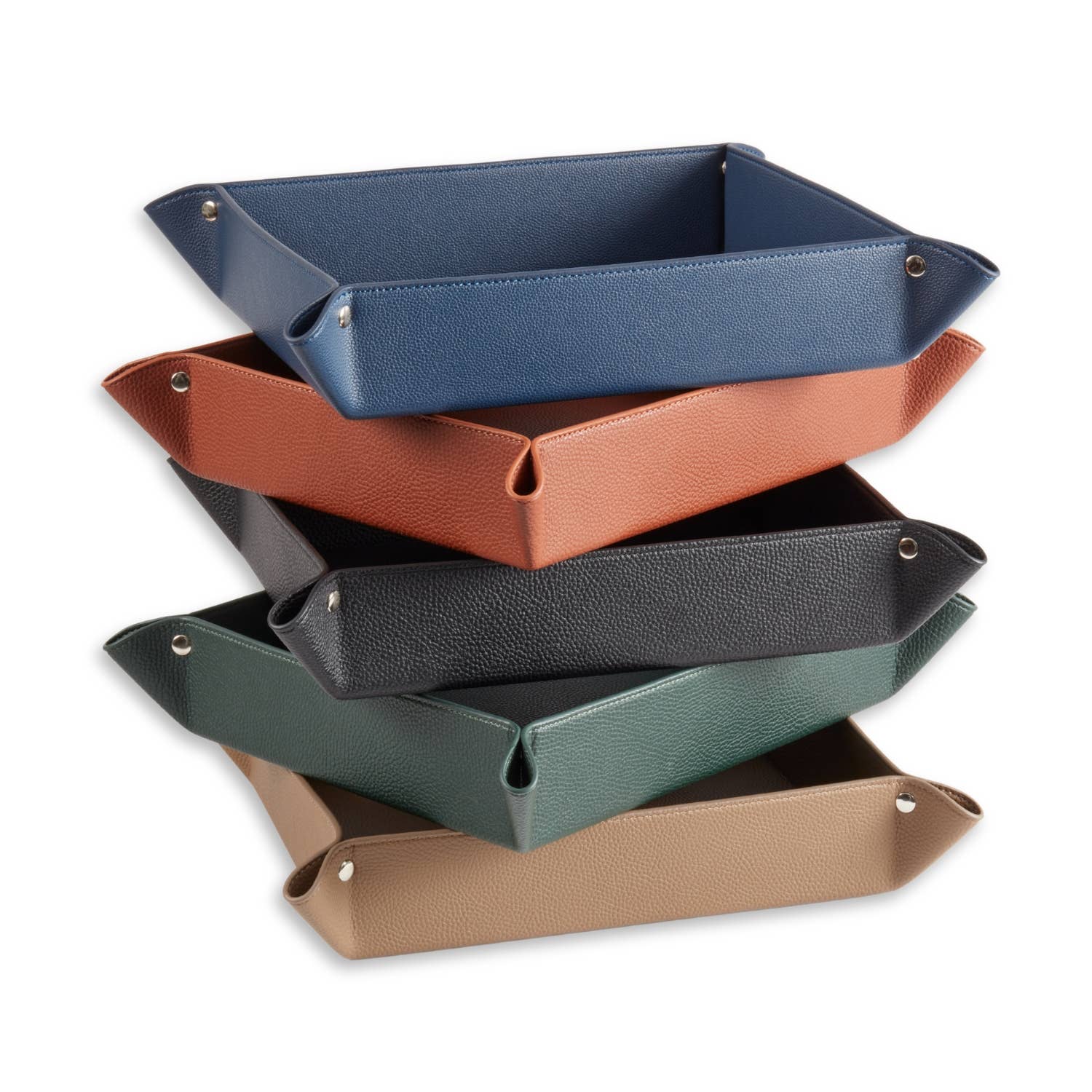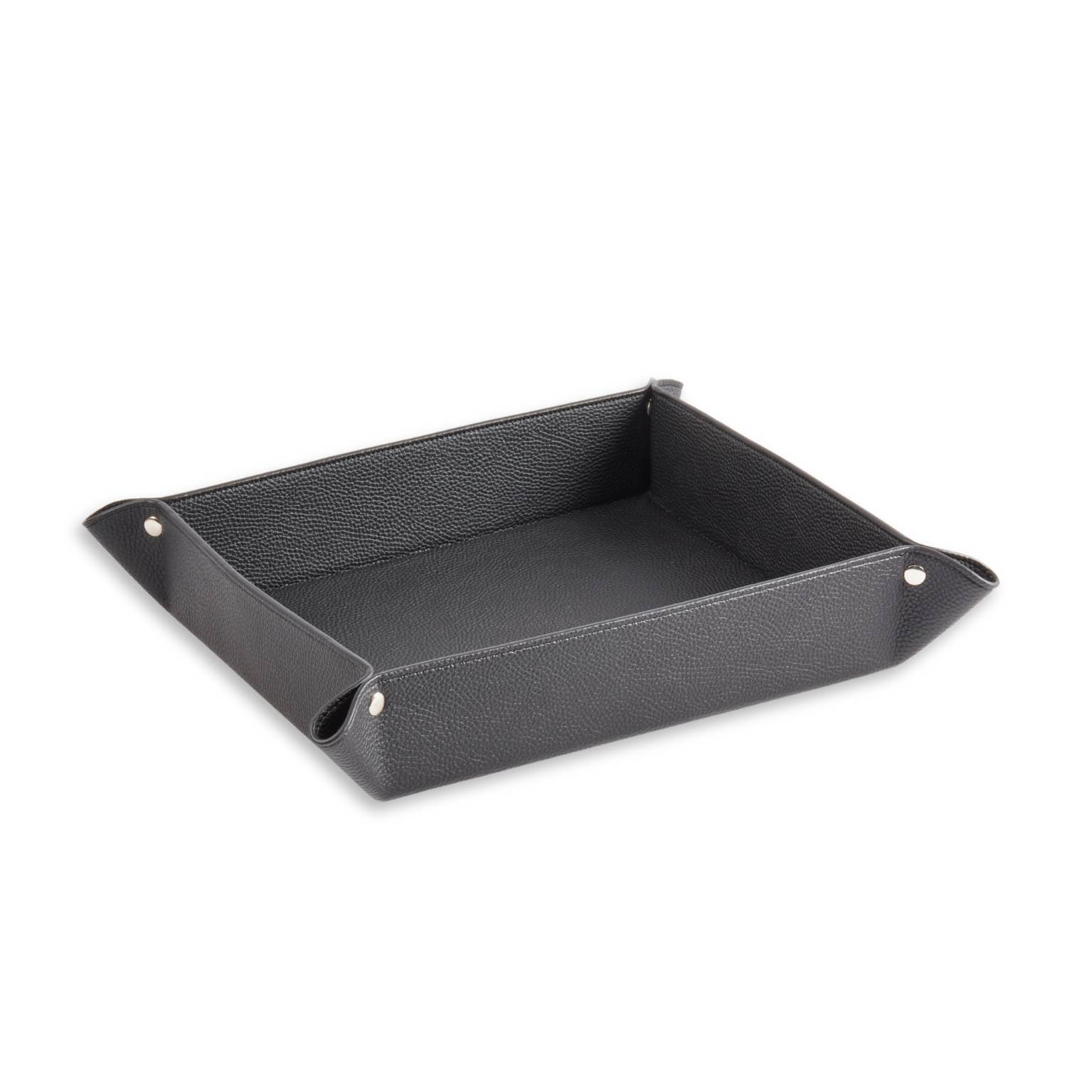 This sleek and versatile leatherette valet is designed to simplify your daily life while adding a touch of sophistication to your space. Measuring 12" x 10", this valet strikes the ideal balance between spaciousness and compactness. The innovative snap closure system keeps your items secure while also allowing for quick access. The use of high-quality materials ensures that the valet is durable, as well as luxurious.