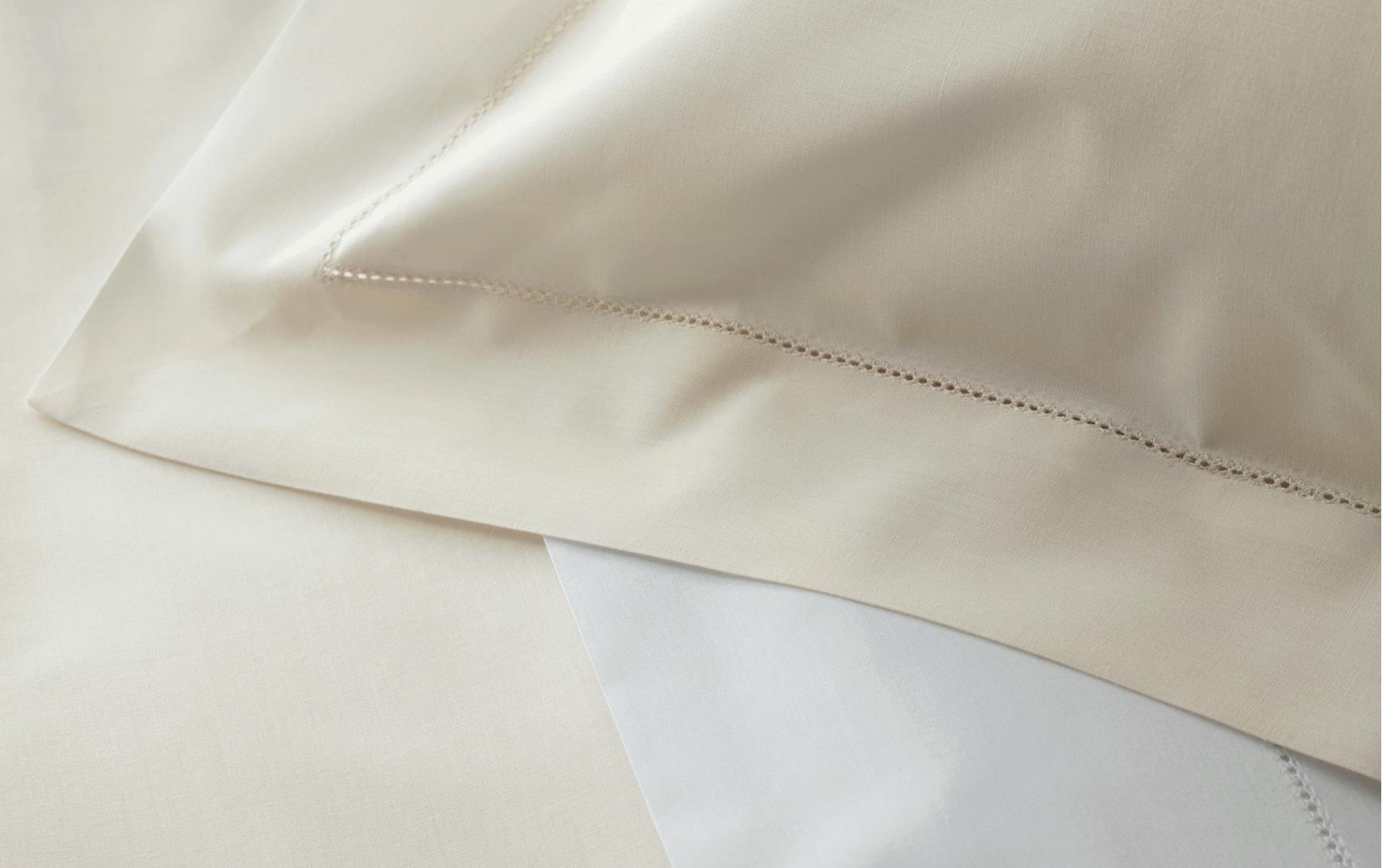 A beautiful, easy-care base for any bed, ivory or white Positano sheeting is accented with a simple hemstitch. Made from 200 thread count percale from Italy, it’s a linen closet staple.