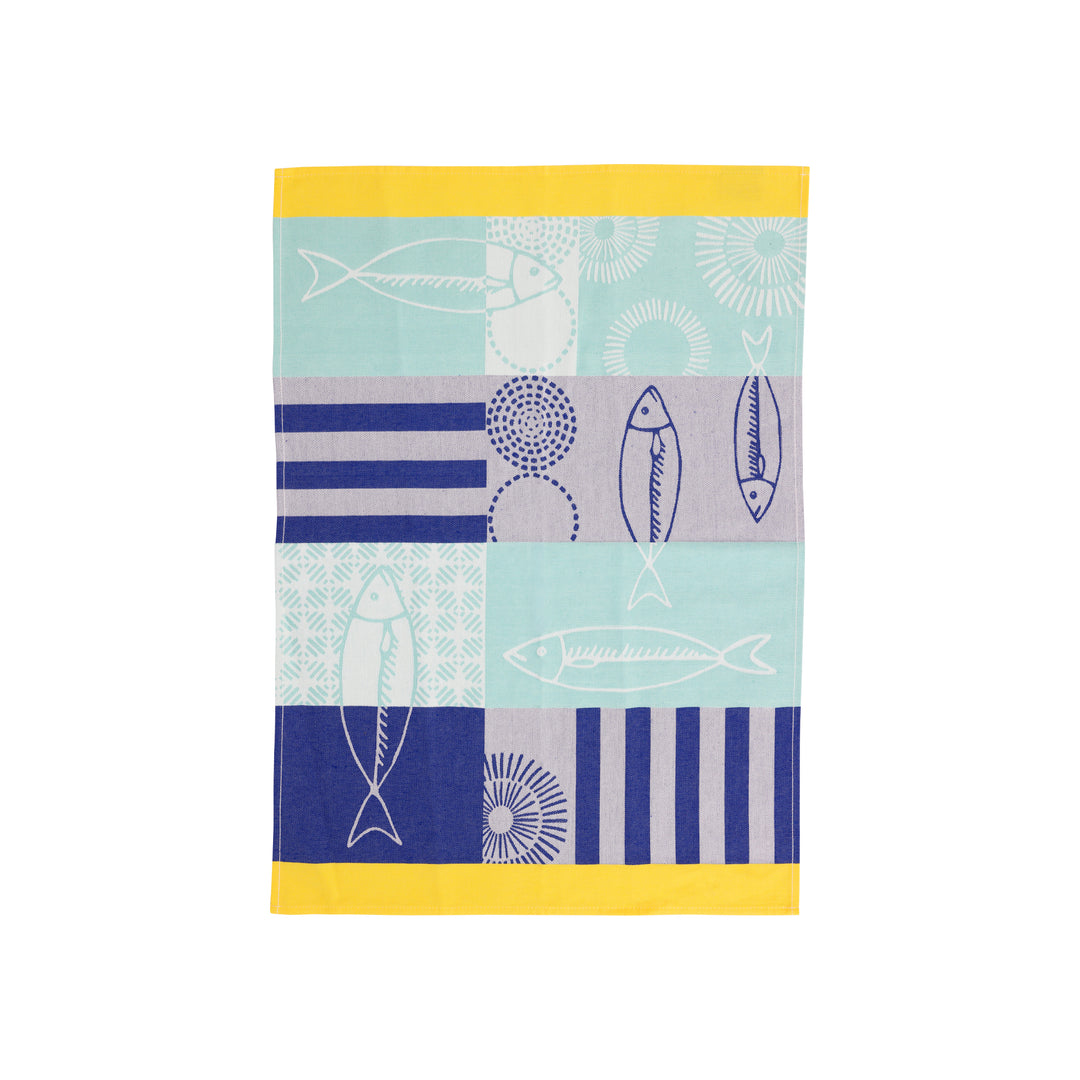 Strofinaccio Aqua, Blue, and Yellow Fish Dish Towels - Set of 2