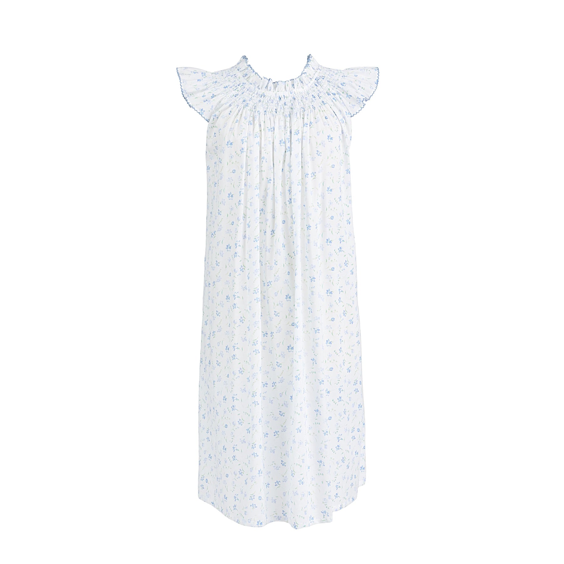 Our Katy Nightgown is made with a super soft brushed cotton. This lightweight stunner features a smocked elastic neckline and delicately scalloped flutter sleeves with contrast trim. Wear it around the house or toss it over a swim suit.