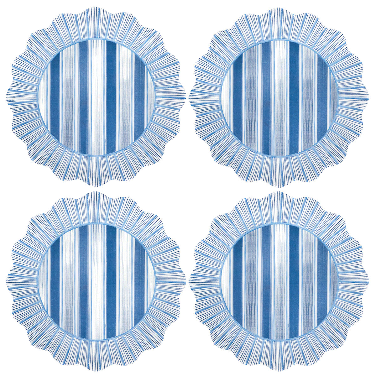 Reminiscent of a sunburst, we’ve added a radiant ruffle trim in vibrant and happy hues to the classic cabana stripe—making this chic and shatterproof dinner plate a splash more special, feminine, and fun.