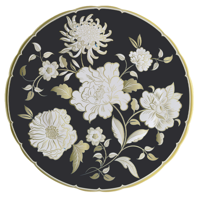 Imari Accent Blue Camellias Plate in Gift Box