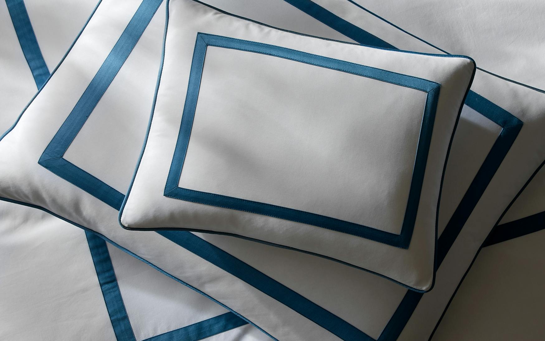 Inspired by our iconic Lowell bedding, Louise is a striking interpretation of the collection. Its base is our incredibly smooth and lightweight 500 thread count Bergamo Giza Egyptian cotton percale and the appliqué is available in a selection of sophisticated colors. A clean, corded knife edge completes the picture for this meticulously crafted style.