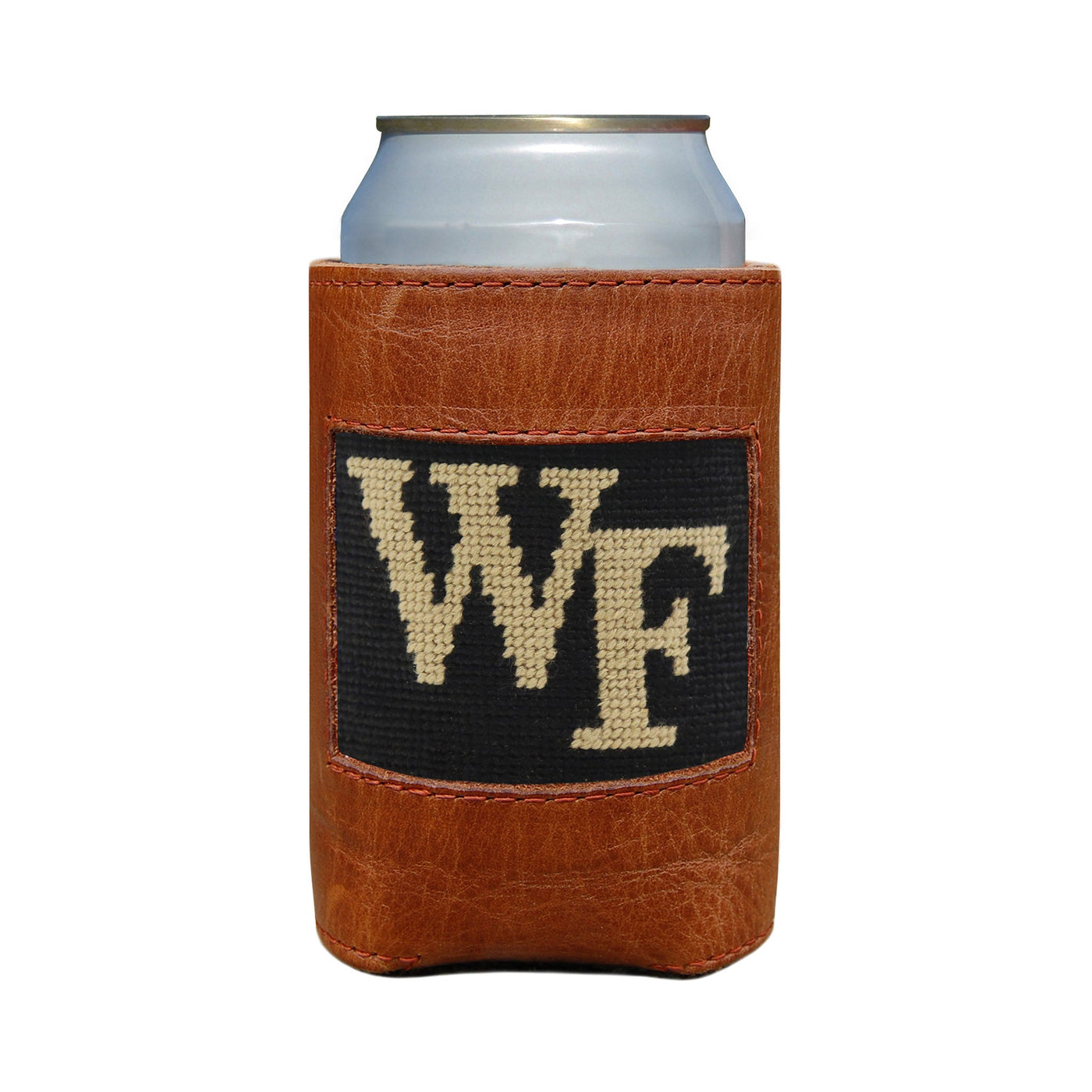 Our can coolers combine our signature 100% hand-stitched needlepoint with an Italian, full grain leather exterior and a neoprene liner. Our attractive can coolers will keep you and your drink cool. Can you dress your drink up any better?